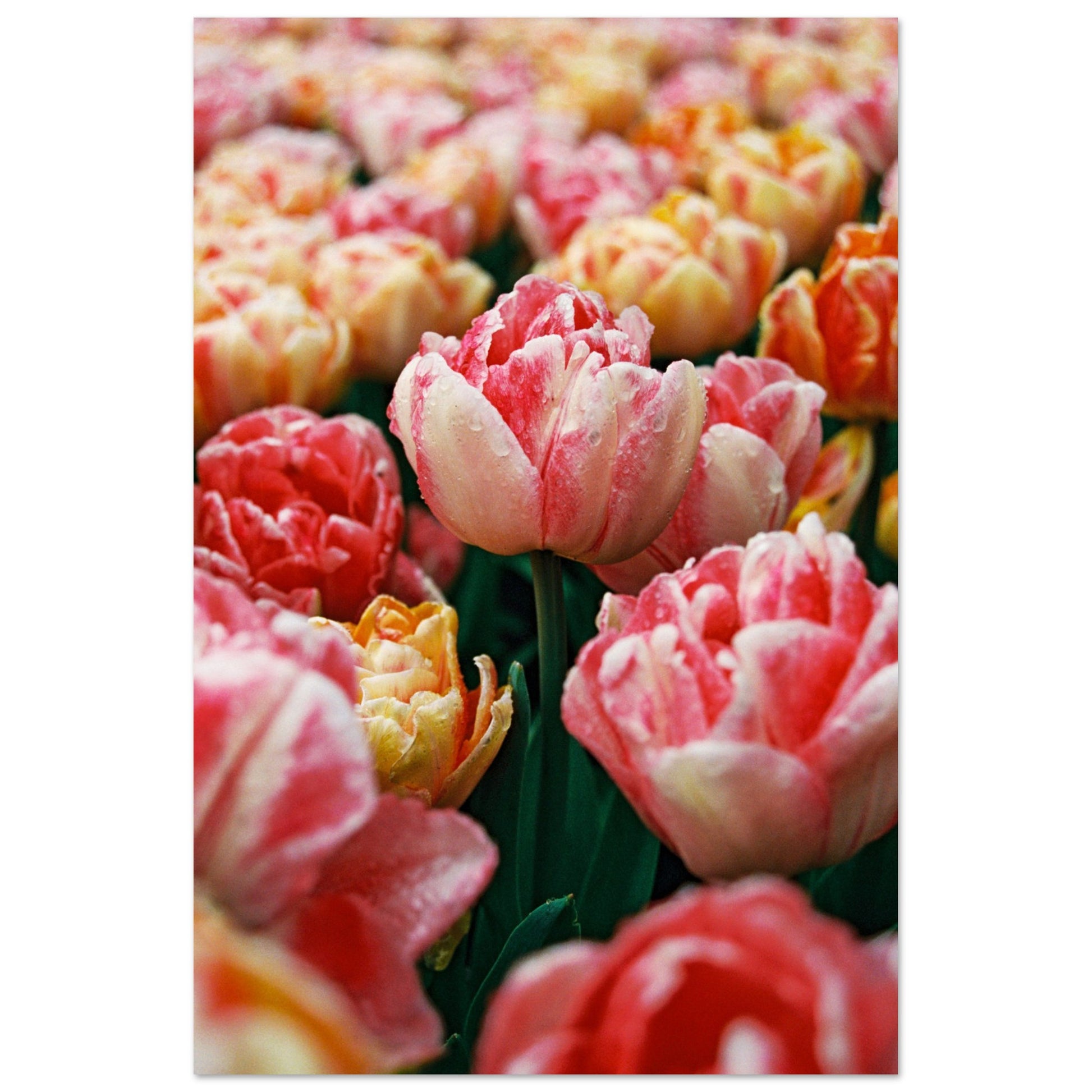 Experience an array of brightly-colored Dutch tulips in full bloom.
